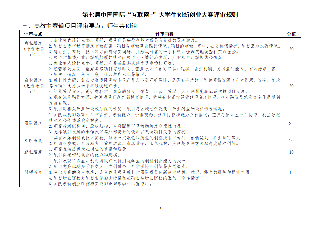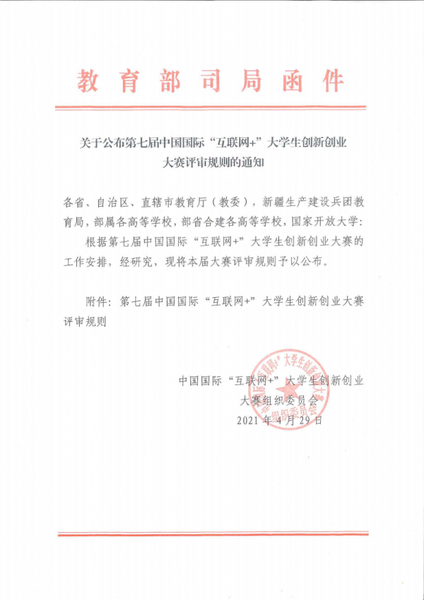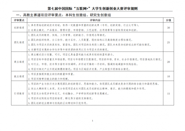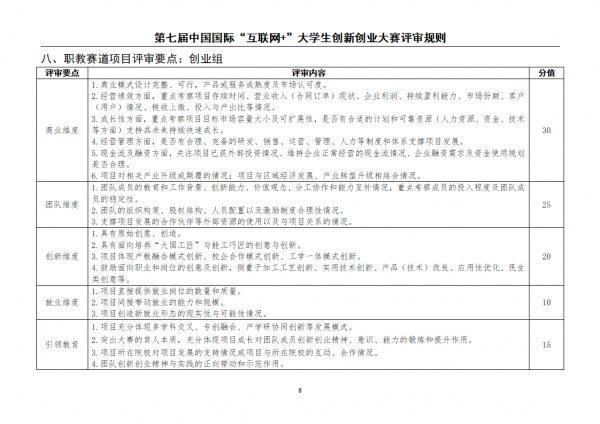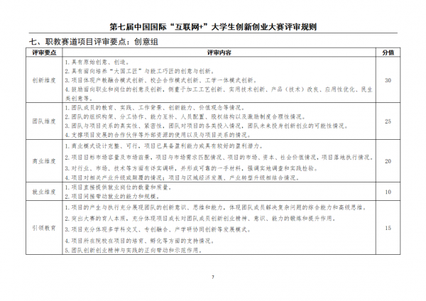 “互联网+”大赛| 关于公布第七届中国国际“互联网+”大学生创新创业大赛评审规则的通知