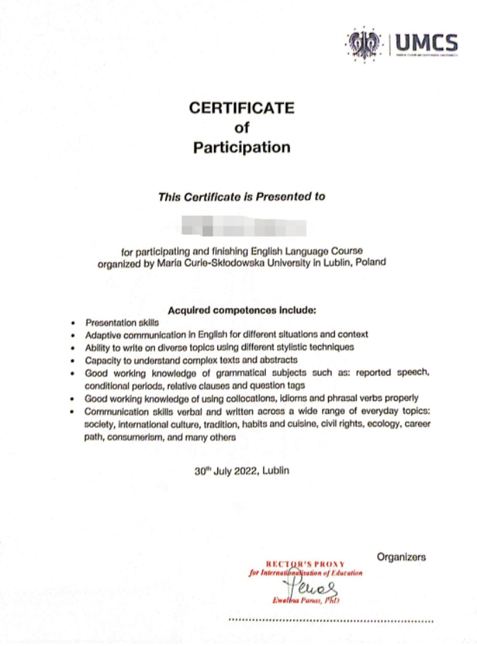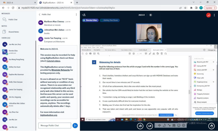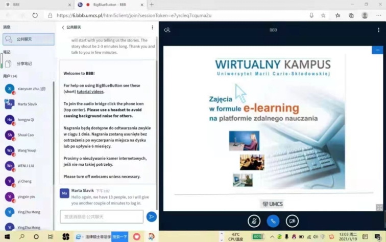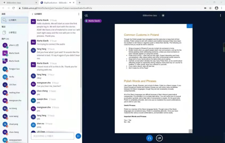 授课形式:波兰居里夫人大学在线教学平台;