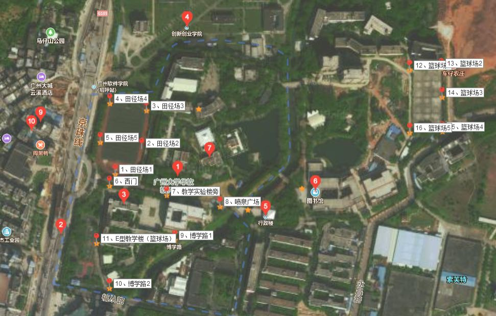 由学生利用课余时间在课程所规定的固定区域:学院足球场、学院旧篮球场、学院E型教学楼周边道路采用跑步的形式进行,跑步过程通过手机APP“运动世界校园”进行记录和成绩上传。