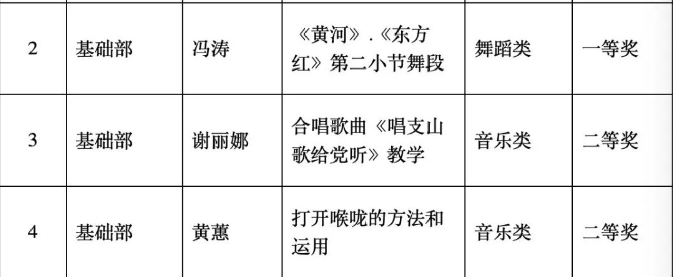 图1学院首届美育教师教学基本功比赛获奖名单(基础部)