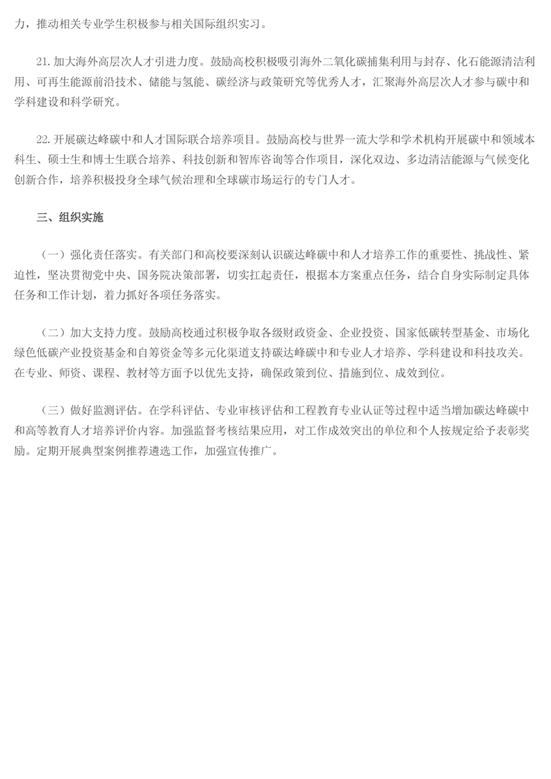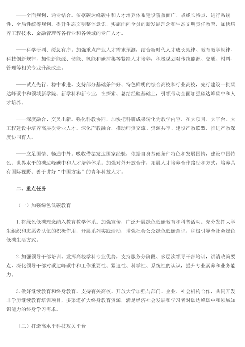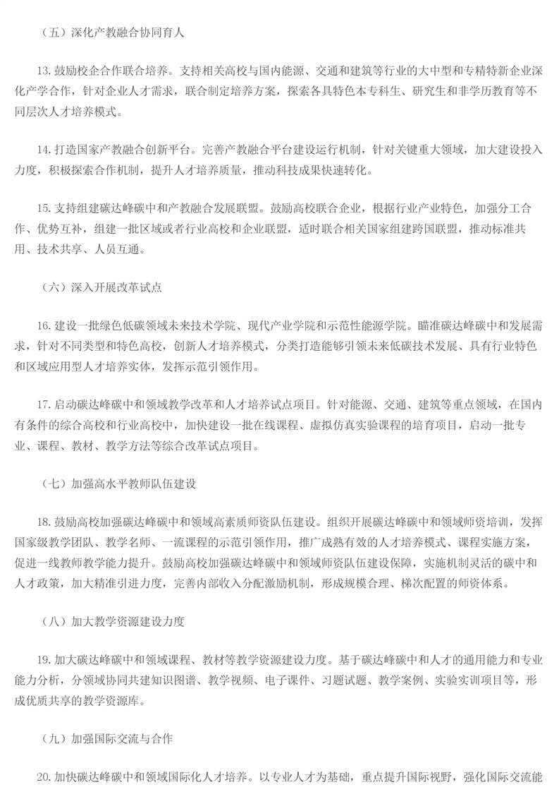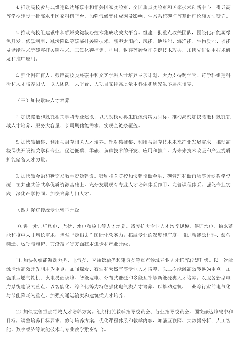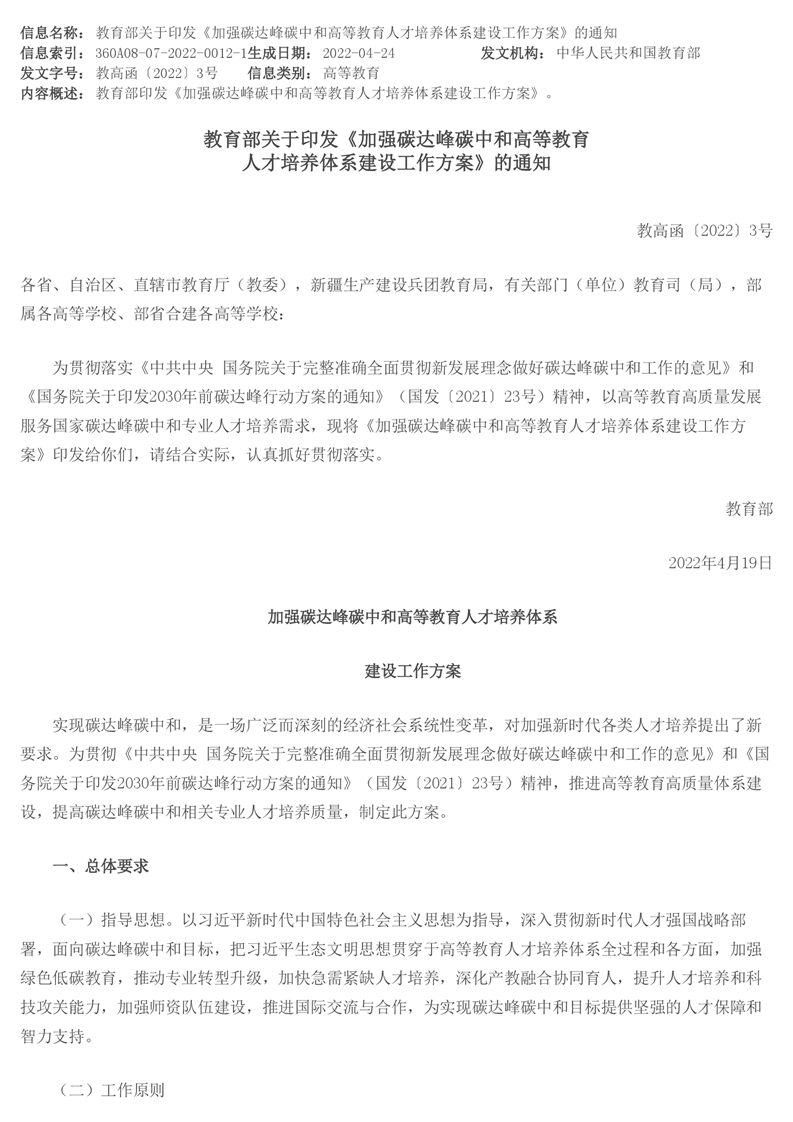 教育部关于印发《加强碳达峰碳中和高等教育人才培养体系建设工作方案》的通知
