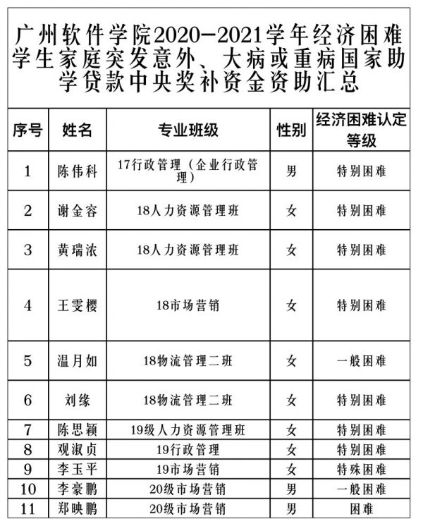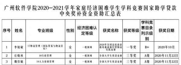 根据《广东省财政厅关于下达2020年高校应征入伍服兵役相关资助政策清算资金及助学贷款中央奖补资金的通知》(粤财科教〔2020〕144 号)、《广东省教育厅关于2020年国家助学贷款中央奖补资金安排方案的函》和《广州软件学院中央国家助学贷款奖补专项资金管理办法》等文件要求,我系认真开展2020-2021学年春季学期国家助学贷款中央奖补专项资金资助工作。