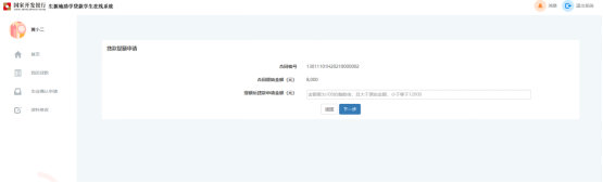 输入提额金额后点击“下一步”,系统弹框展示“国家开发银行生源地信用助学贷款借款合同提额申请单”。如下图所示。
