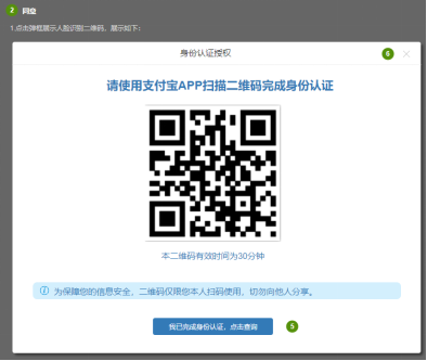 1、身份认证流程需用本人的支付宝客户端扫描二维码进行认证,在支付宝认证成功后,提示用户认证成功;
