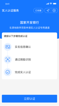 扫描完成后,自动跳转国家开发银行生源地助学贷款续贷实人认证专用通道,学生需按照提示流程进行身份认证授权。