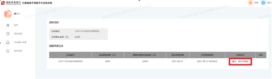 如果需要查询合同提额申请记录,可点击首页的“贷款提额申请”菜单模块,认证成功的合同申请状态为“通过,待分行审批”;