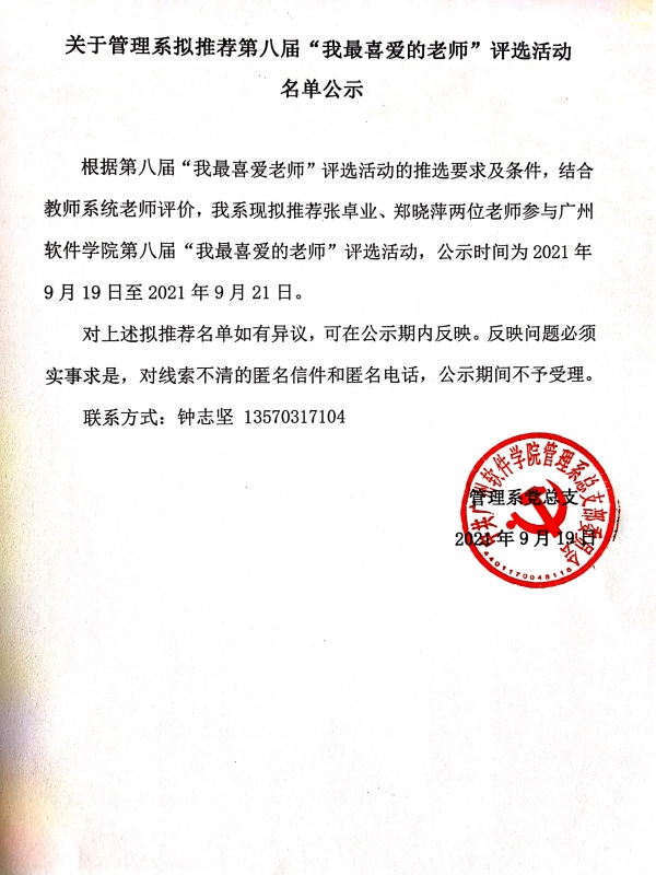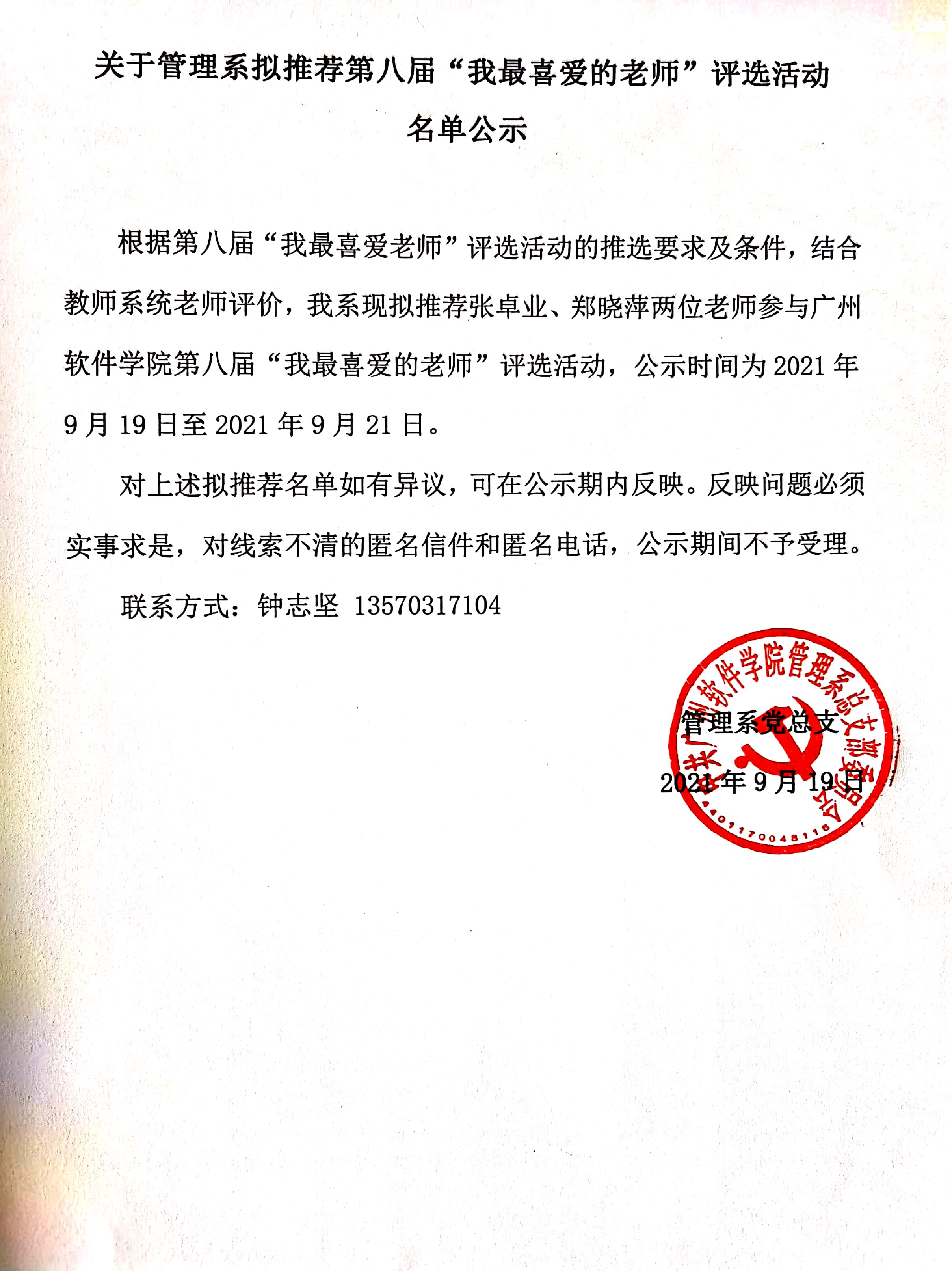 关于管理系拟推荐第八届“我最喜爱的老师”评选活动名单公示