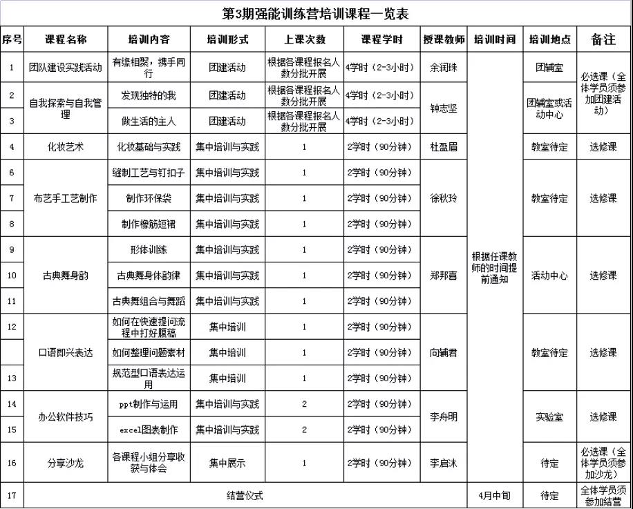 资助育人文化节——关于举办我校第3期强能训练营培训班的通知