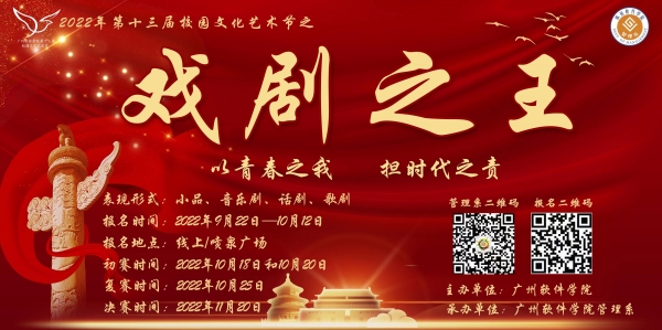 青春如朝日,当立时代潮头。新时代的青年应在新征途中留下青春奋斗的鲜明印记,自觉以“青春之我”学思践悟,坚定理想信念,扛起时代责任。踔厉奋发、笃行不怠。本届戏剧之王的主题为“以青春之我,担时代之责”,其中设有“红星耀中华,奋斗百年路”、“传学及古今,经略贯华夏”与“淬楷模之行,铸时代荣光”三大子主题,分别以爱国情怀、红色信仰、文化遗产、传统文化、时代楷模为切入点。本次活动在丰富校园文化、展现新时代大学生青春活力与才华的同时,还加强了大学生精神文明建设,培养学子高尚情操,提高我校大学生思想教育、艺术修养与综合素质水平。