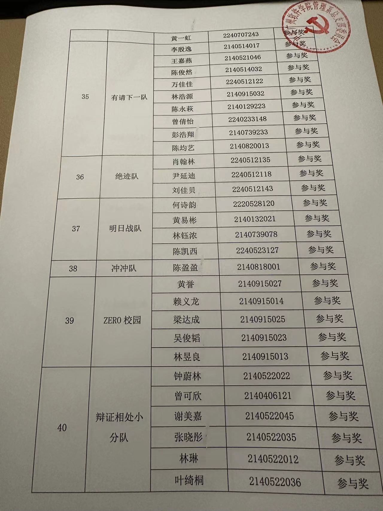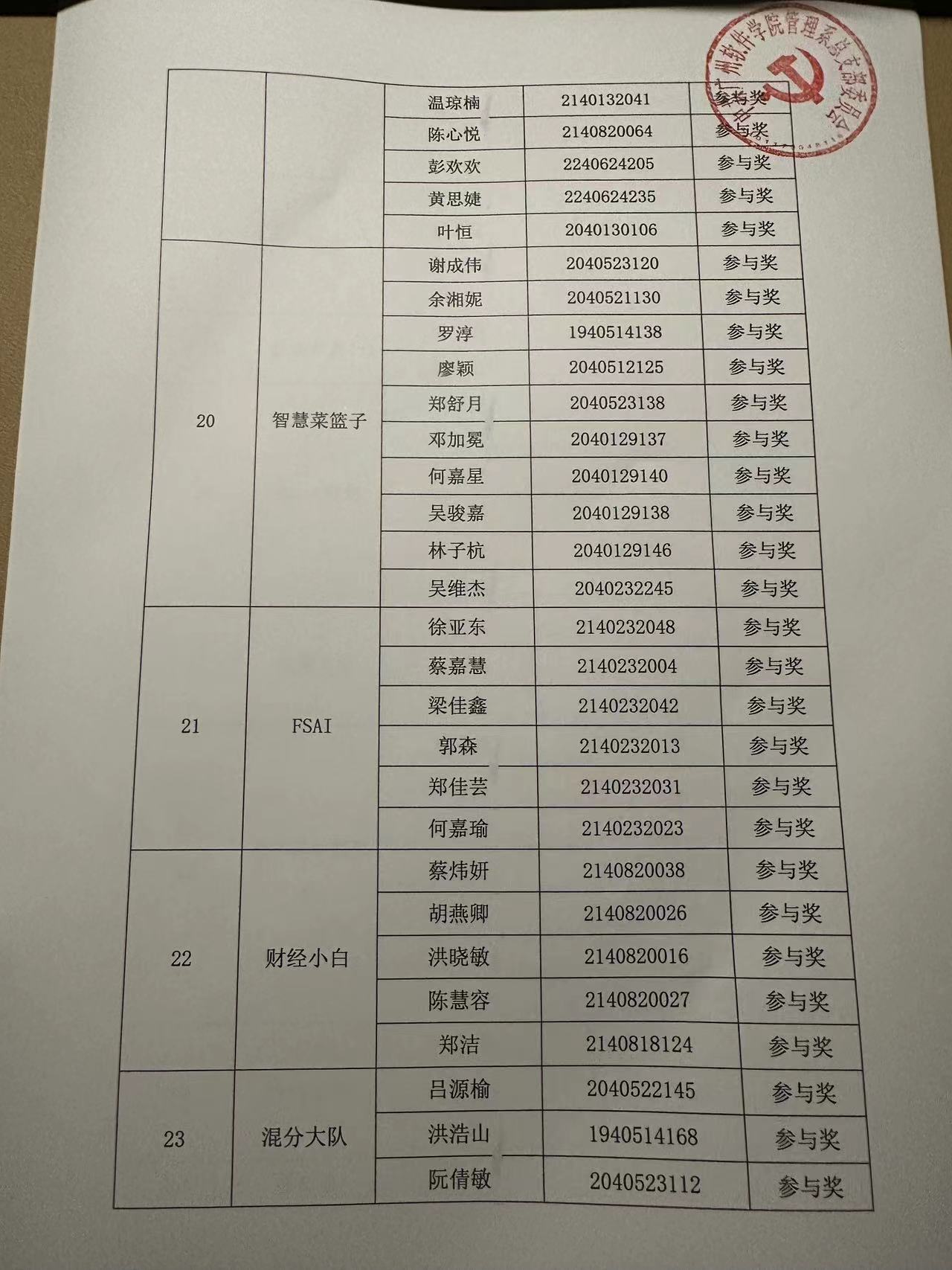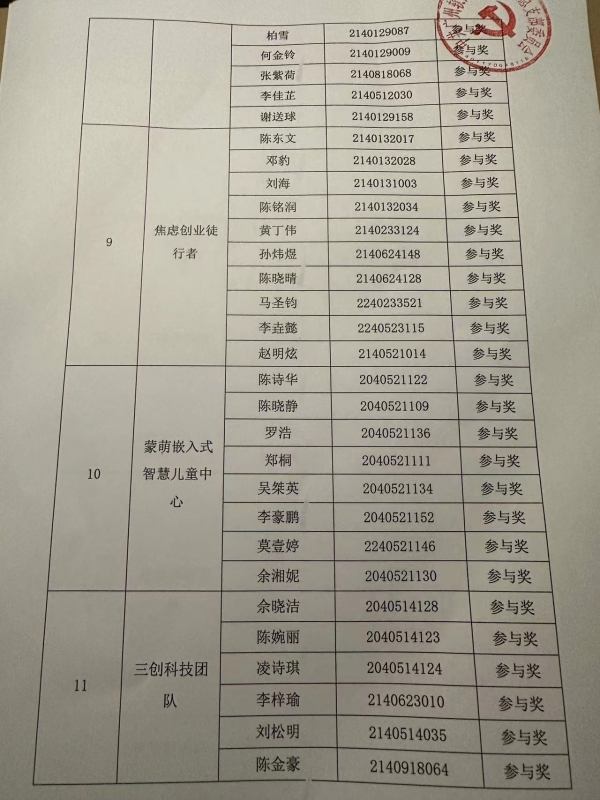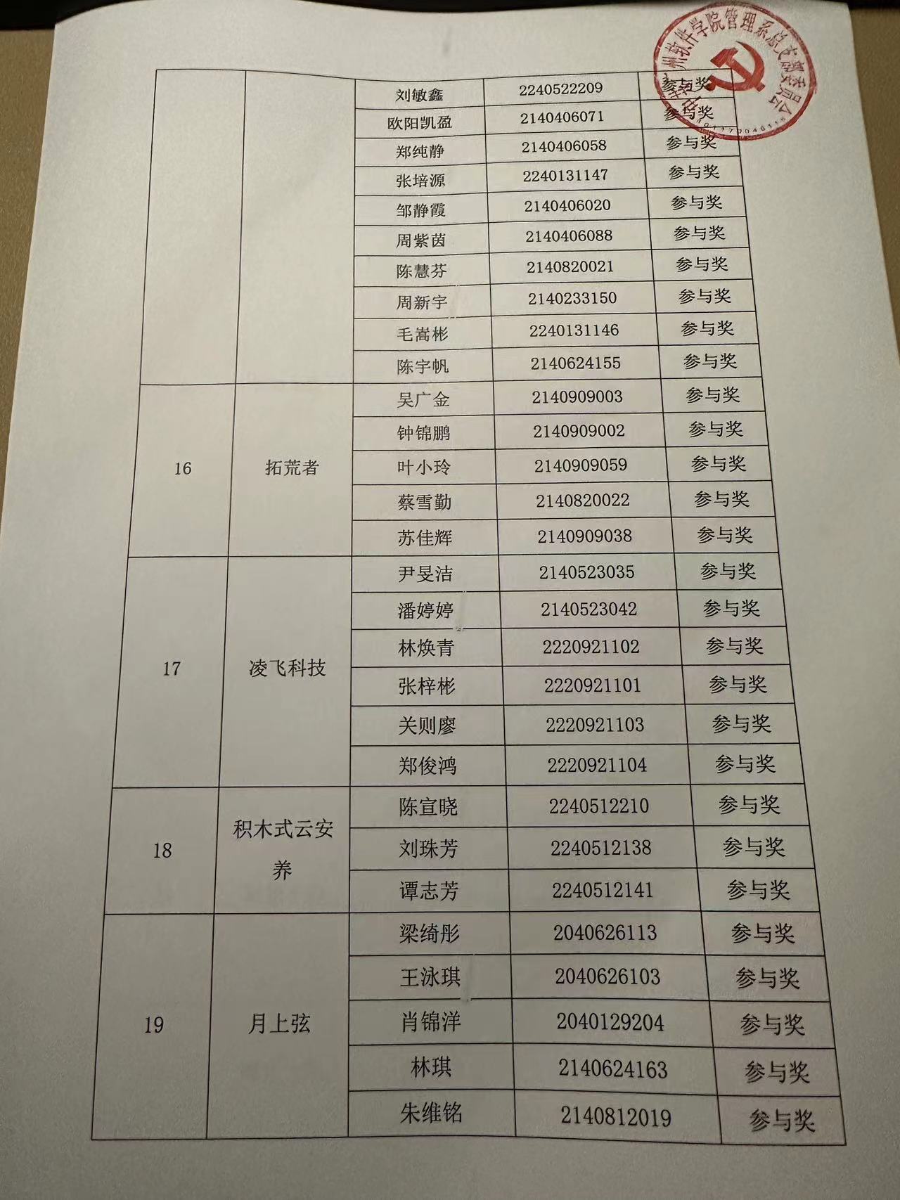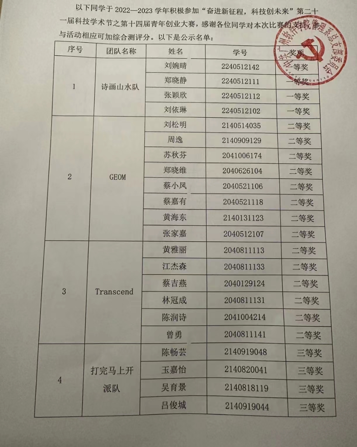 以下同学于2022—2023学年积极参加“奋进新征程,科技创未来”第二十一届科技学术节之第十四届青年创业大赛,感谢各位同学对本次比赛的支持,参与活动相应可加综合测评分。以下是公示名单: