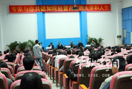 就业问题是学子们热切关注并乐于讨论的一个问题。陈剑安教授在回答国际经贸系一位同学的“大学生在大学应该先学习,还是先创业”这个问题时表示:“要对自己的能力、机遇进行客观的衡量。自身条件能与社会对接的,不妨先起步,而当前还没有条件和社会对接的话,就先做好学习工作,因为‘社会海阔天空,机会总会等你’”,同时,陈教授勉励学生,“有志者事竟成,有愿望者就有成功的可能。”