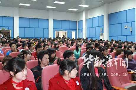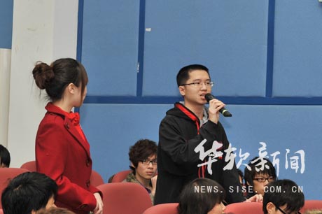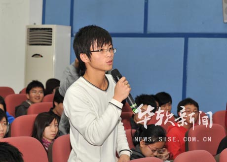 多媒体与影视编辑专业的一位同学提问道:“我的人生有目标,但在行动上缺乏计划,请问该怎么办?”刘晓明教授对此表示,规划的设立是十分必要的,而计划的制订则需注意三点:一是计划要确实可行的;二是在此基础上有一个好的目标;三是善于利用环境来帮助自己实现这个目标。来自09电子商务本科一班的同学则对此继续提问:“该如何确定目标和如何协调好时间上的冲突问题?”张人杰教授用“知道自己不知道”、“不知道自己知道”、“不知道自己不知道”这三句话揭示了大学生的一般规律,赢得全场热烈的掌声。