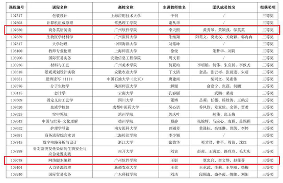 本网讯 近日,由广东省教育厅指导、华南师范大学主办的第五届全国高校混合式教学设计创新大赛获奖名单公布,我校网络技术系王影老师和外语系李天照老师的教学团队分别荣获全国三等奖。