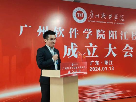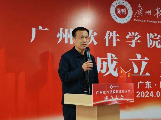 成立大会在庄严的国歌声中拉开序幕,党委副书记张广金宣读了同意成立广州软件学院阳江校友会的批复。2011届国际经济与贸易专业校友梁宗颖,代表阳江校友会筹委会报告了阳江校友会的筹备成立历程。
