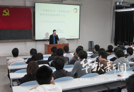 大会现场 据游戏系党总支李明明副书记介绍,此次党日活动要求学生党员、积极分子以主人翁的姿态认真学习评建知识,带头遵守《大学生文明行为八项规范》,增强自身道德修养,改掉学生在日常学习生活中存在的诸多与迎评创优不相符的不良习惯,以饱满的热情积极参与学校迎评创优各项工作,为学院本科教学评估进行动员,创建优良校风、学风,为我院迎评创优工作增添光彩。 (供稿:游戏系 唐增城 摄影/夏文景 编辑:林延军)