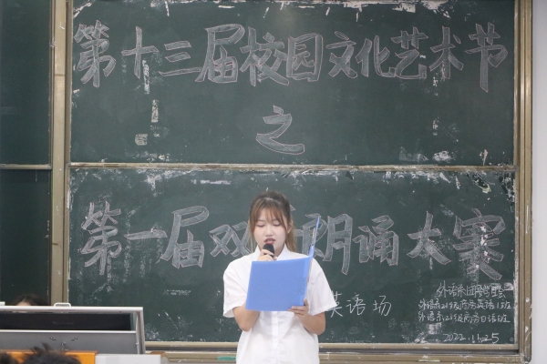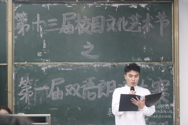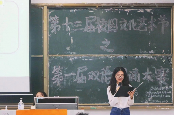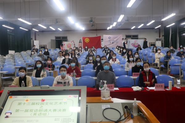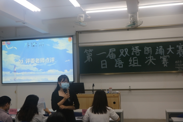 本网讯 第十三届校园文化艺术节之第一届双语朗诵大赛决赛的日语组、英语组分别于11月22日和11月25日在T105和E101顺利举行,本次比赛邀请了方爱乡老师、陈星裕老师、李竹丽老师、佐藤克也老师、刘婧暄老师担任日语组评委;李天照老师、唐建国老师、倪奕旋老师、付灿老师、石兆岚老师、陈颖老师担任英语组评委;外语系党总支张洪华书记、心晴屋指导老师陈秋曼老师、晨曦社指导老师黄晨琳老师以及主席团书记处的师姐们作为嘉宾莅临指导。