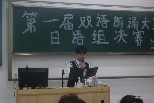 日语组此次共有七名选手入围了决赛,他们运用优美的语调,将一篇篇情感各异的文章朗诵出来,获得了评委与同学们的认同。
