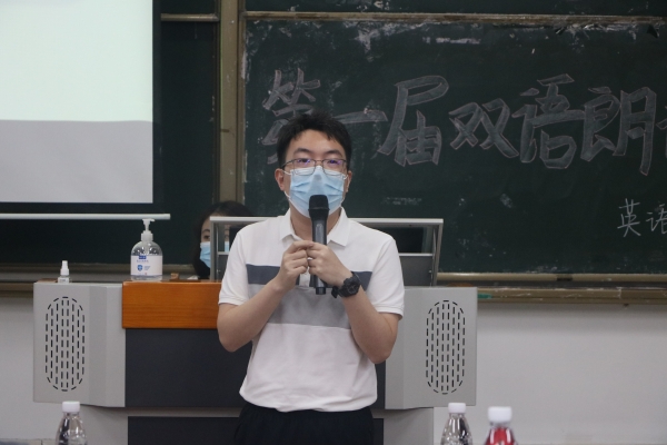 英语组比赛结束后,李天照老师肯定了英语组的参赛选手的朗诵表现,也指出了选手们存在的一些问题,并鼓励同学们加强语音语调的学习。