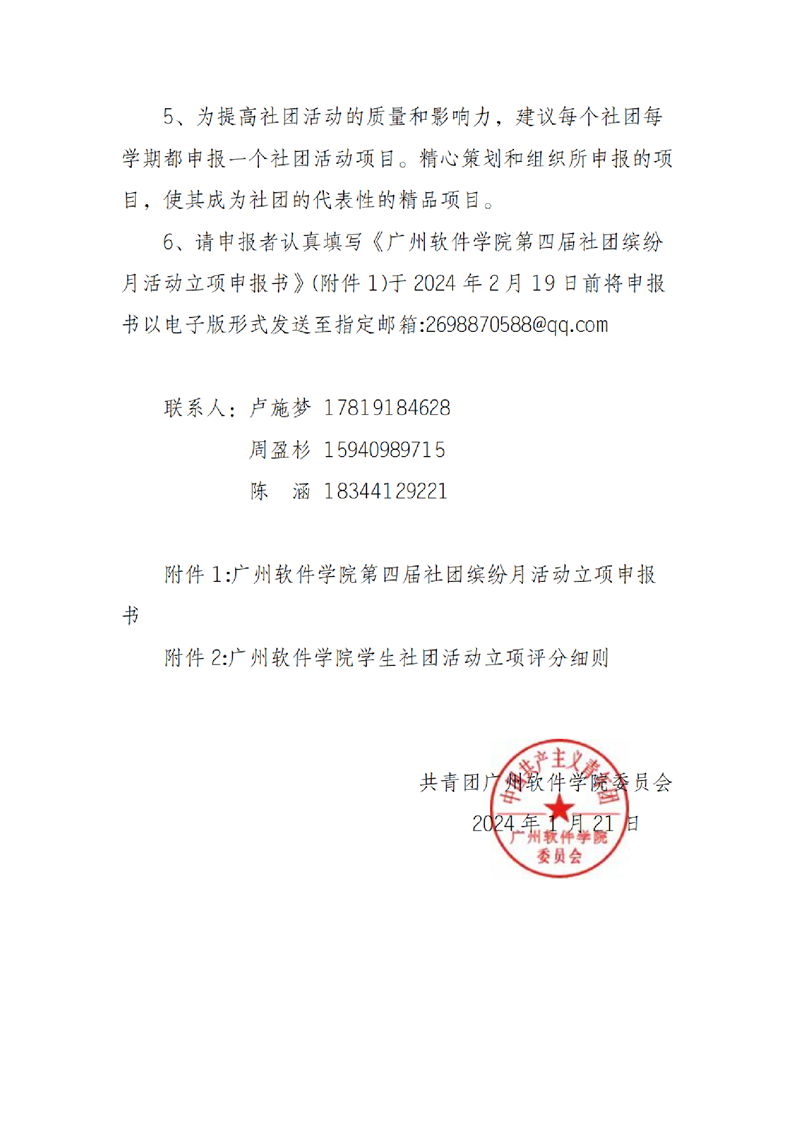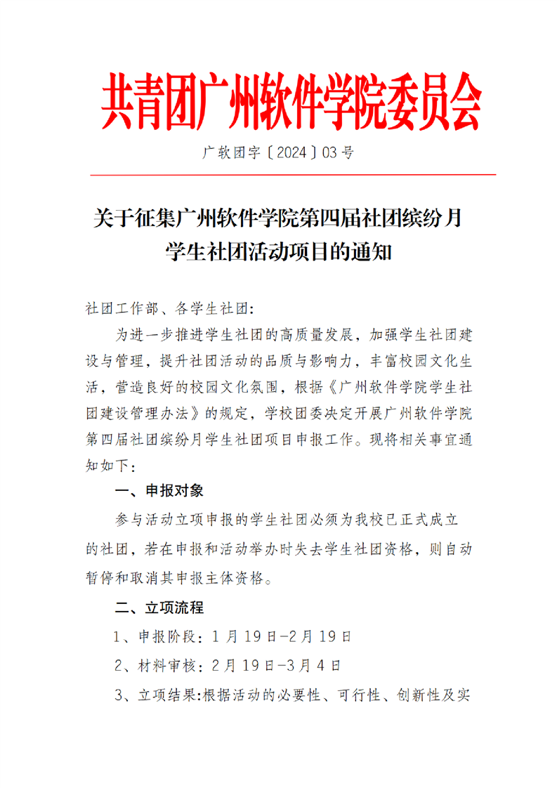 关于征集广州软件学院第四届社团缤纷月学生社团活动项目的通知