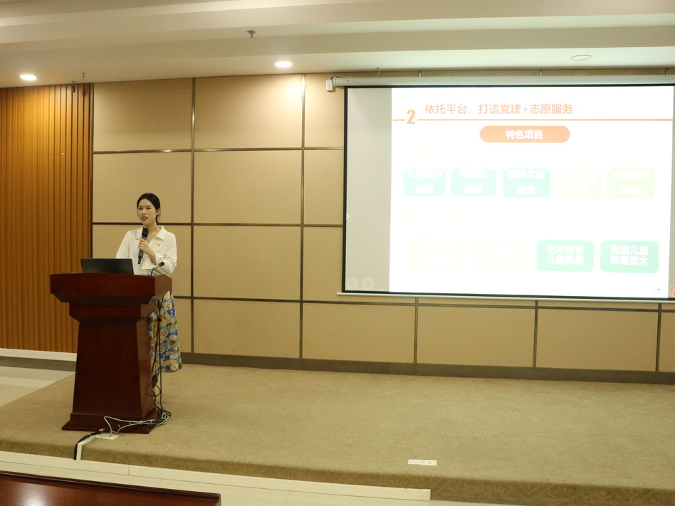 游戏系辅导员严菁菁以《用好“党建+ ”,激发“红色引擎”新活力》为主题进行了党建工作经验分享。游戏系学生党支部以“学”为基础,开展理论教育、党性教育、红色教育,落实“三会一课”制度,定期开展知识竞赛、报告会、理论宣讲,组织党员读原著、学原文、悟原理,实施“党员活动日”制度,开展“返家乡”实践活动。以“做”为落脚点,坚持打造“品牌党建、特色党建”的理念,依托“艺术扶苗队”平台组织开展特色墙绘、支教等项目。聚焦学风建设,融合党建+专业,打造特色IP、特色活动、文创产品,开发VR思政游戏。以线带面,深化党-团-班三级联动,深化党支部发展向心力。全方位感知,多角度践行学生党建工作规范化、科学化、育人化。