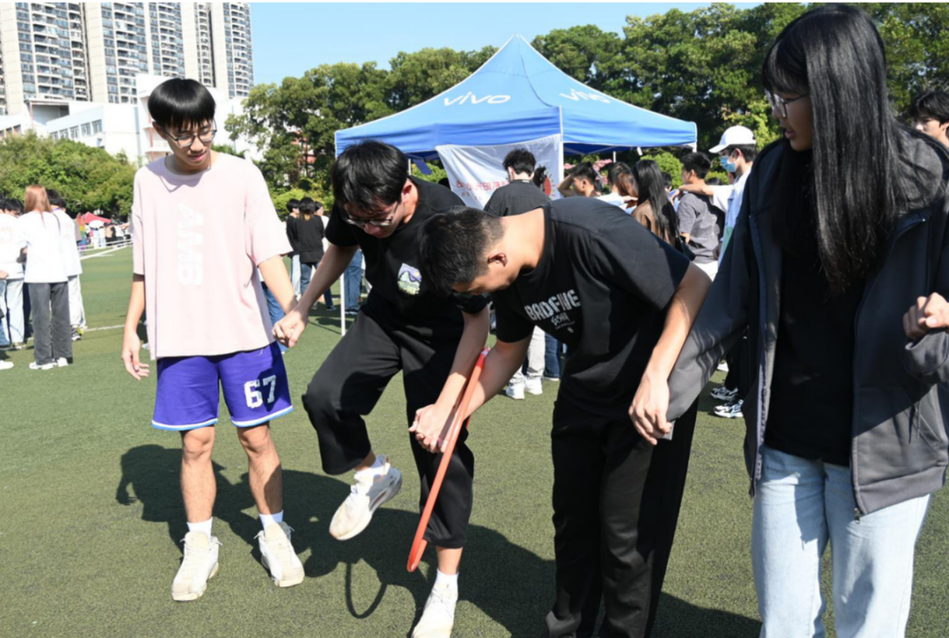 风采展示结束后,全场82支参赛队伍在领誓人的带领下进行活动宣誓,并在统一游戏起点自行出发选择现场各院系任务点的活动。为了争取成为优胜队伍,各参赛队伍团结协作,奋勇争先,充分发挥团队的智力和体力等优势。