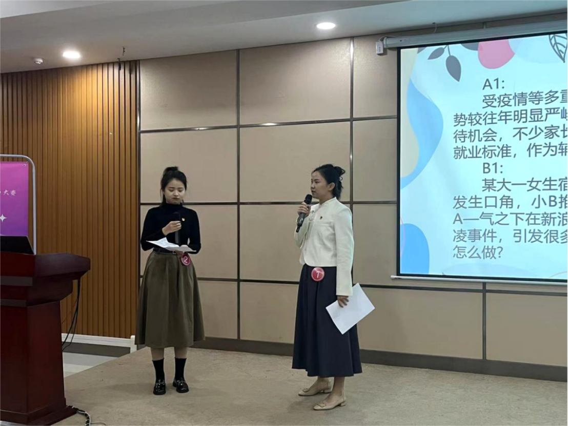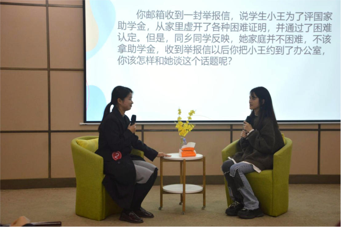 第十届辅导员素质能力大赛决赛,结合基础知识测试笔试成绩,各院(系)部推荐,最终确定外语系张佳丽、电子系刘丹、计算机系钟卓麟等11名辅导员进入决赛参加谈心谈话环节、案例研讨环节。