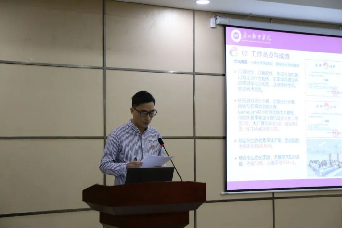 游戏系学工办主任、团委书记方惠豹述职