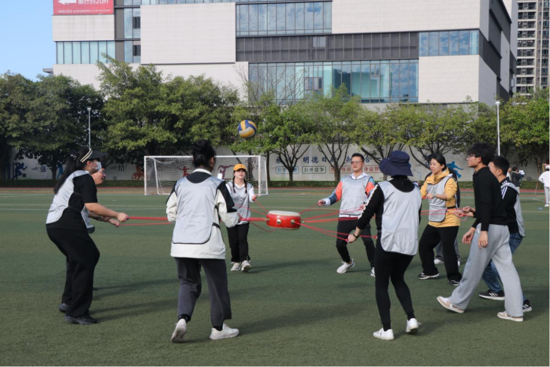 各院(系)部辅导员精诚团结、配合默契,个人专注与团队协作完美融合,共同完成各项比赛,充分展现了团队合作和个人实力的魅力。在趣味运动会的欢声笑语中,在此起彼伏的加油声中,在互动中增进感情、感受快乐,用默契配合克服一个个比赛中的难关。