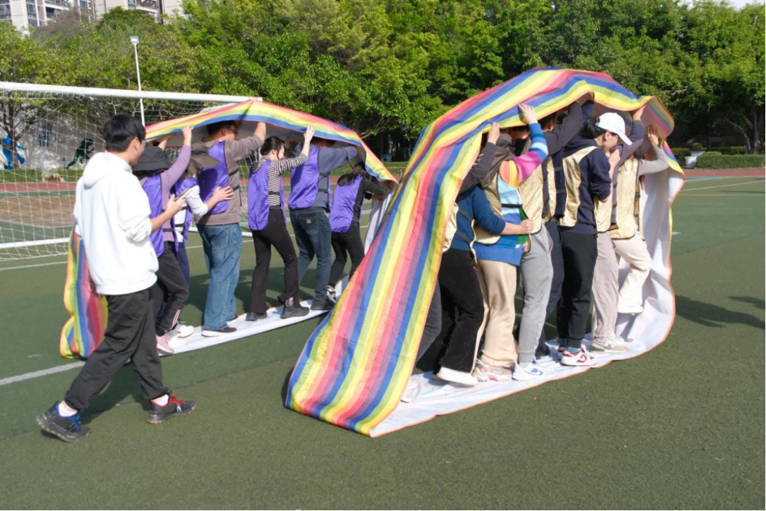 全体学工人员约90人参加此次活动,共10支队伍,每队8人,每队成员均包含各院系党组织书记、学生处及团委领导和各院(系)部辅导员,很好地促进了各院(系)部辅导员和“新”“老”辅导员的融合与交流,活动现场充满活力和欢笑。